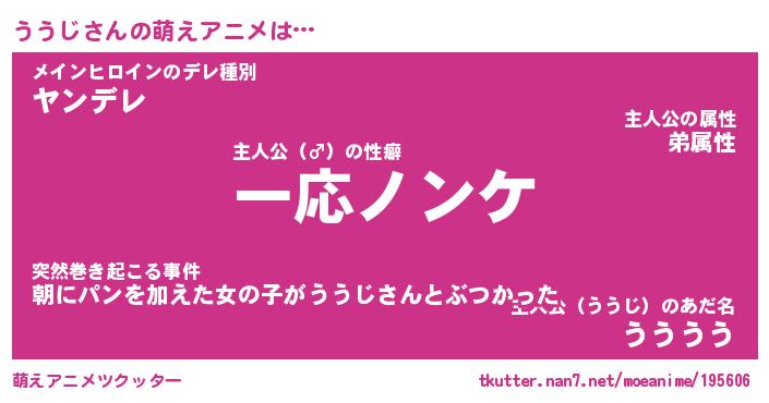 | ヘコむあだ名 | 『ううにゅー』『つくし』『ううお』 |