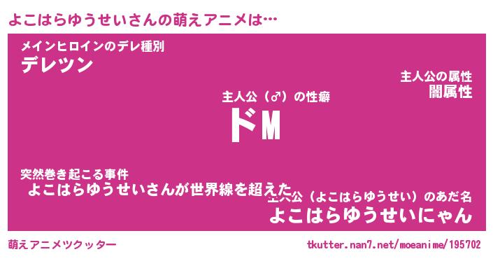| 女子向けラノベタイトル風あだ名 | 『(仮)よこはらゆうせいのやんごとなき事情』 |