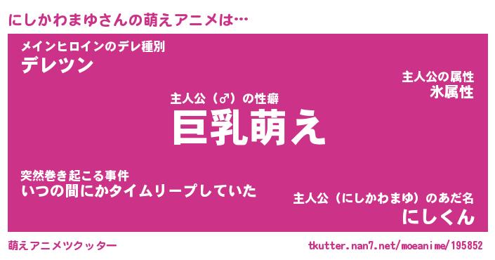 | 男性向けラノベタイトル風あだ名 | 『にしかわまゆの憂鬱』 |