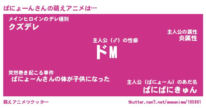 | 男性向けラノベタイトル風あだ名 | 『ぱにょーんの憂鬱』 |