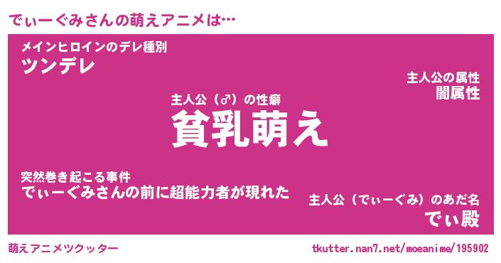 | 男性向けラノベタイトル風あだ名 | 『でぃーぐみの憂鬱』 |