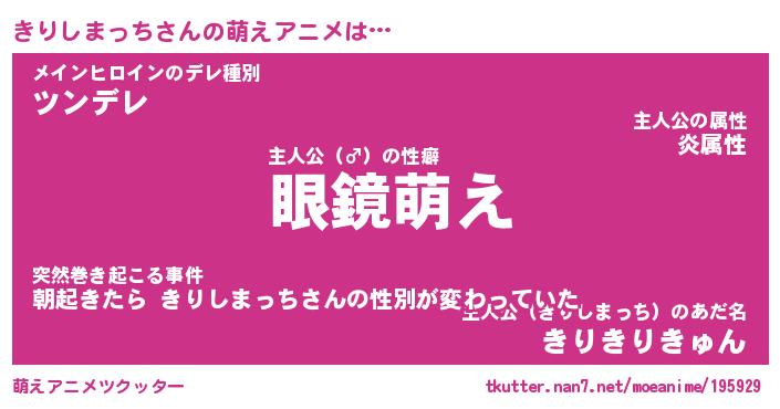 | 男性向けラノベタイトル風あだ名 | 『きりしまっちの憂鬱』 |