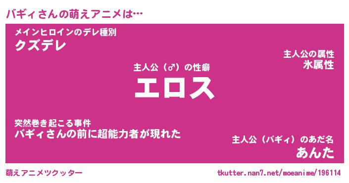 | 女子向けラノベタイトル風あだ名 | 『誰かこのバギィを説明してください! ~契約から始まるウェディング~』 |