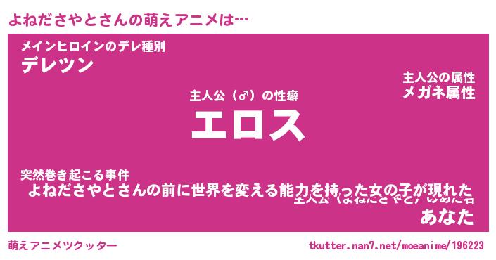 | 女子向けラノベタイトル風あだ名 | 『誰かこのよねださやとを説明してください! ~契約から始まるウェディング~』 |