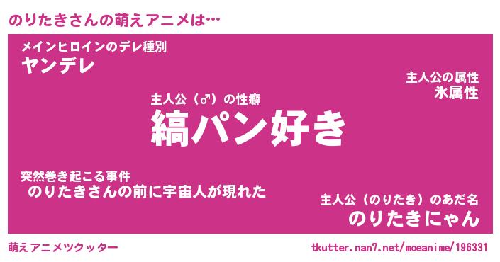 | 男性向けラノベタイトル風あだ名 | 『のりたきの憂鬱』 |