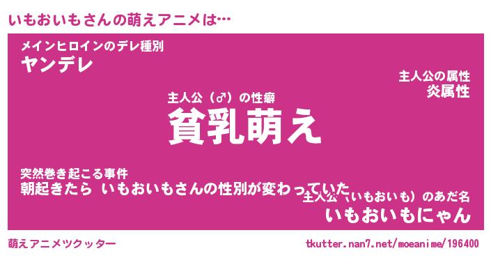 | 男性向けラノベタイトル風あだ名 | 『いもおいもの憂鬱』 |