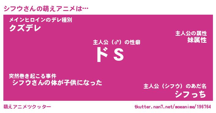 | 男性向けラノベタイトル風あだ名 | 『シフウの憂鬱』 |