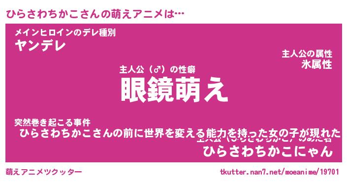 | 肩書あだ名 | 『ひらさわちかこ御曹司』 |