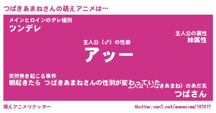| 2回繰り返すあだ名 | 『つばつば』『つつばば』『ぬれぬれ』 |
