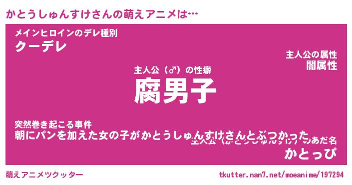 | 肩書あだ名 | 『かとうしゅんすけ御曹司』 |
