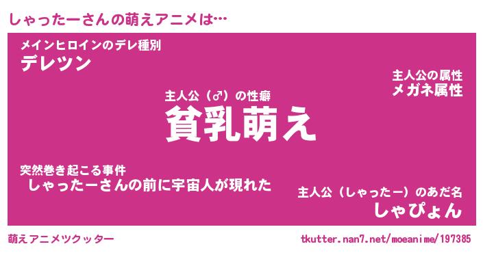 | 男性向けラノベタイトル風あだ名 | 『しゃったーの憂鬱』 |