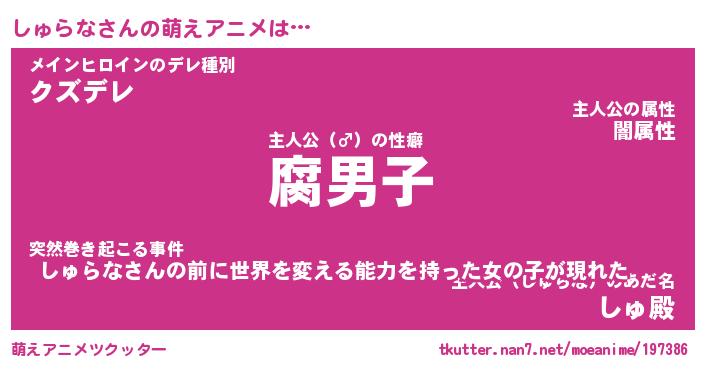 | 男性向けラノベタイトル風あだ名 | 『シュラナアートオンライン』 |