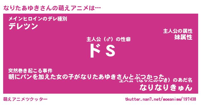 | 女子向けラノベタイトル風あだ名 | 『(仮)なりたあゆきのやんごとなき事情』 |