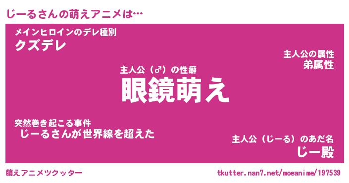 | 男性向けラノベタイトル風あだ名 | 『じーるの憂鬱』 |