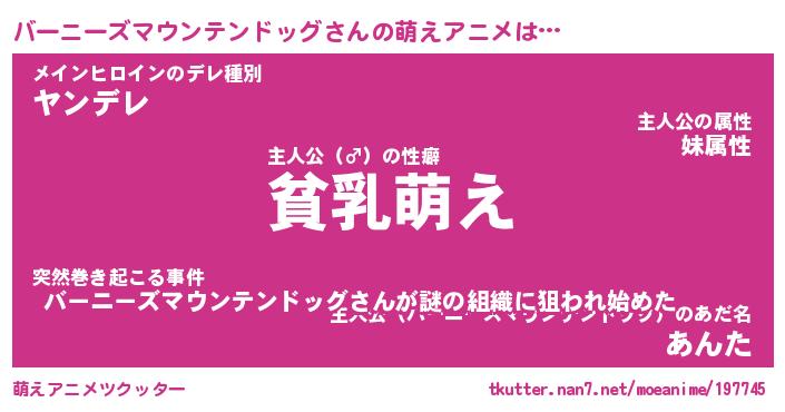 | 男性向けラノベタイトル風あだ名 | 『バーニーズマウンテンドッグの憂鬱』 |