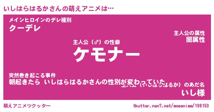 | 男性向けラノベタイトル風あだ名 | 『イシハラハルカアートオンライン』 |