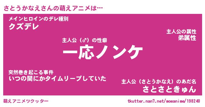 | 男性向けラノベタイトル風あだ名 | 『サトウカナエアートオンライン』 |
