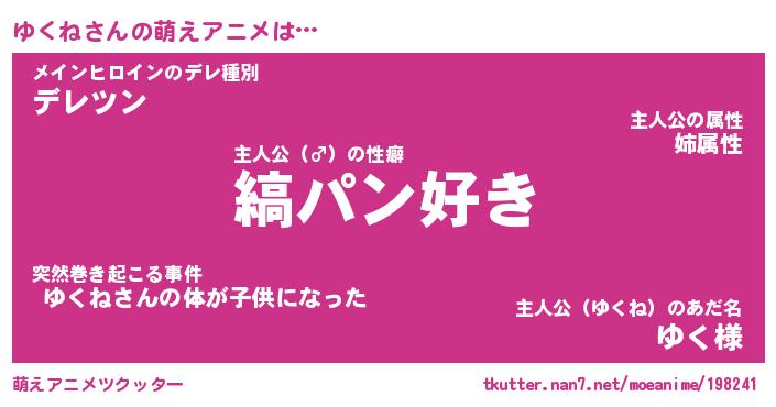 | 男性向けラノベタイトル風あだ名 | 『ゆくねの憂鬱』 |