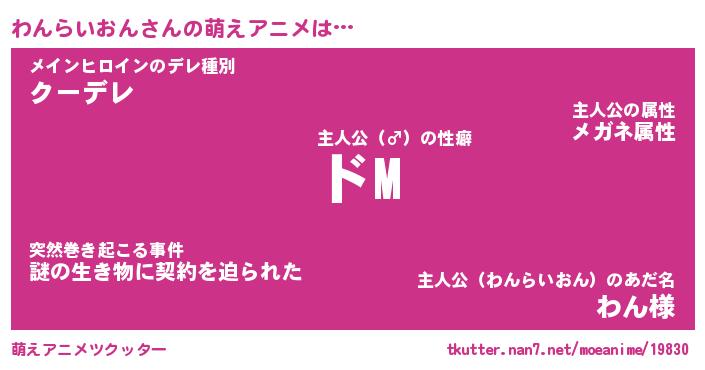 | 女子向けラノベタイトル風あだ名 | 『(仮)わんらいおんのやんごとなき事情』 |