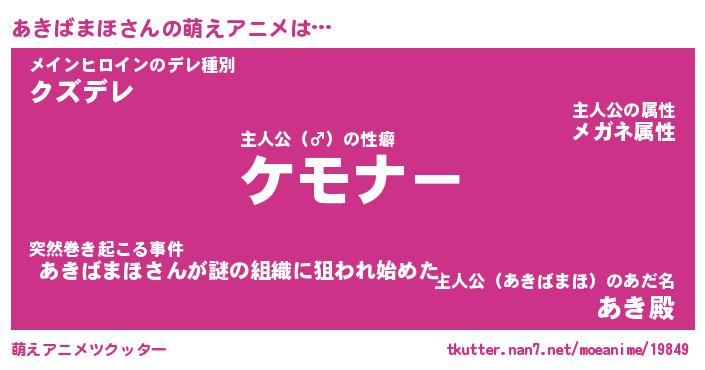 | 女子向けラノベタイトル風あだ名 | 『誰かこのあきばまほを説明してください! ~契約から始まるウェディング~』 |