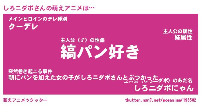 | 男性向けラノベタイトル風あだ名 | 『しろニダボの憂鬱』 |