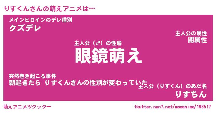 | 男性向けラノベタイトル風あだ名 | 『りすくんの憂鬱』 |