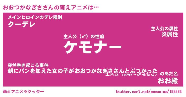 | 男性向けラノベタイトル風あだ名 | 『オオツカナギサアートオンライン』 |