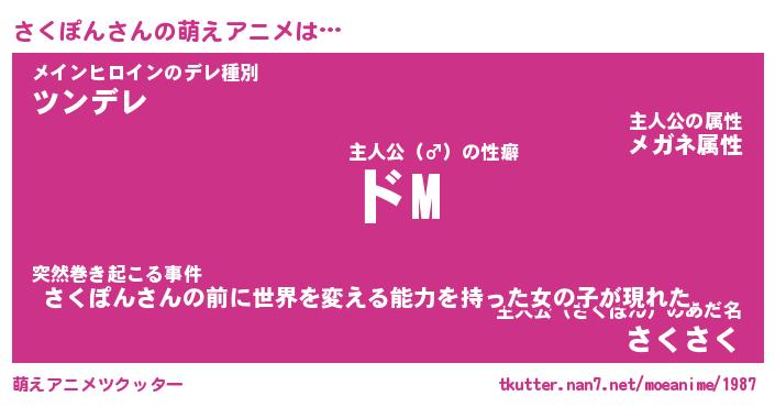 | 男性向けラノベタイトル風あだ名 | 『さくぽんの憂鬱』 |