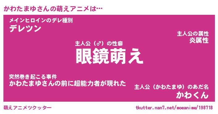 | 男性向けラノベタイトル風あだ名 | 『かわたまゆの憂鬱』 |