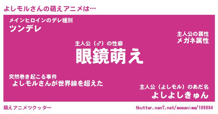 | 男性向けラノベタイトル風あだ名 | 『よしモルの憂鬱』 |