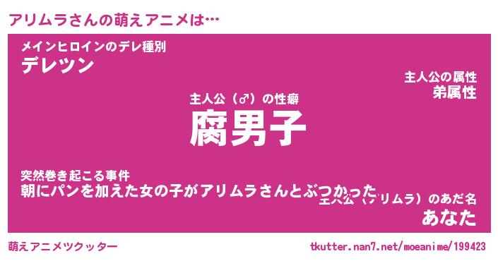 | 男性向けラノベタイトル風あだ名 | 『アリムラアートオンライン』 |