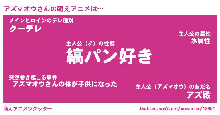 | 男性向けラノベタイトル風あだ名 | 『アズマオウの憂鬱』 |