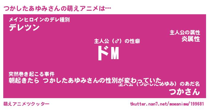 | 男性向けラノベタイトル風あだ名 | 『つかしたあゆみの憂鬱』 |