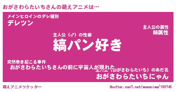 | 男性向けラノベタイトル風あだ名 | 『おがさわらたいちの憂鬱』 |