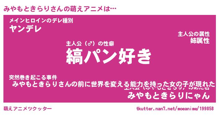 | 女子向けラノベタイトル風あだ名 | 『(仮)みやもときらりのやんごとなき事情』 |