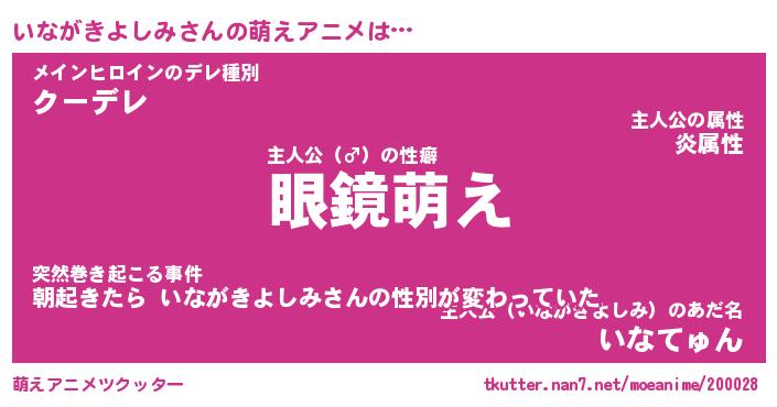 | 男性向けラノベタイトル風あだ名 | 『いながきよしみの憂鬱』 |