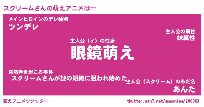 | 男性向けラノベタイトル風あだ名 | 『スクリームの憂鬱』 |