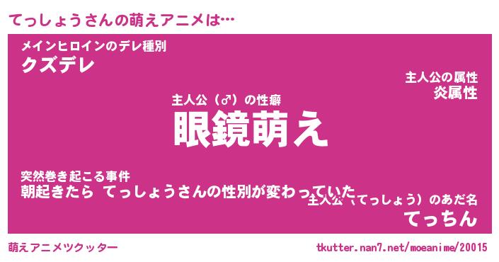 | 男性向けラノベタイトル風あだ名 | 『てっしょうの憂鬱』 |