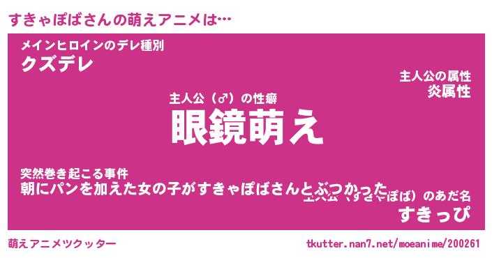 | 男性向けラノベタイトル風あだ名 | 『すきゃぽばの憂鬱』 |