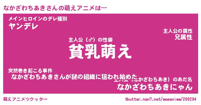 | 男性向けラノベタイトル風あだ名 | 『なかざわちあきの憂鬱』 |