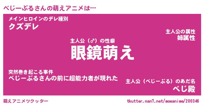 | 男性向けラノベタイトル風あだ名 | 『べじーぶるの憂鬱』 |