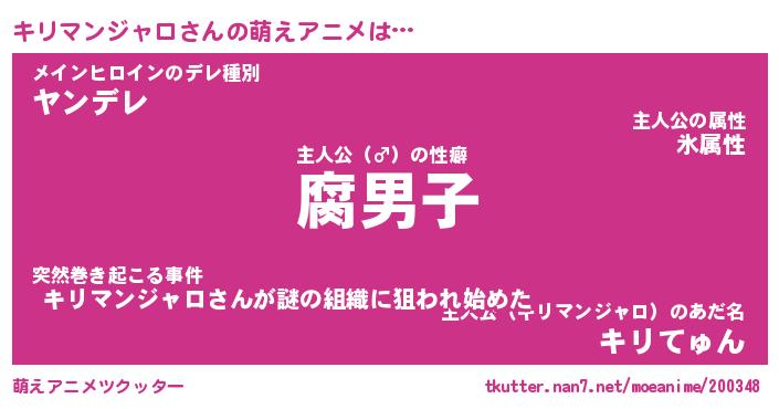 | 男性向けラノベタイトル風あだ名 | 『キリマンジャロアートオンライン』 |