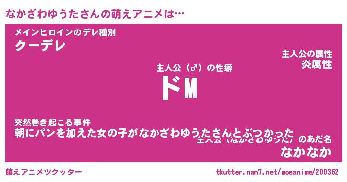 | 女子向けラノベタイトル風あだ名 | 『(仮)なかざわゆうたのやんごとなき事情』 |