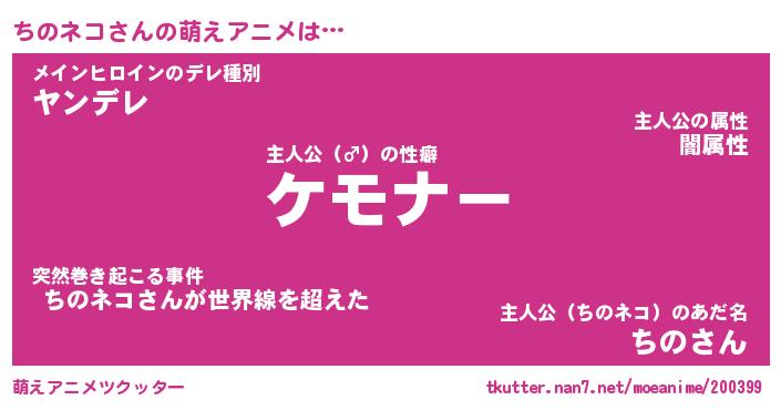 | 男性向けラノベタイトル風あだ名 | 『チノネコアートオンライン』 |