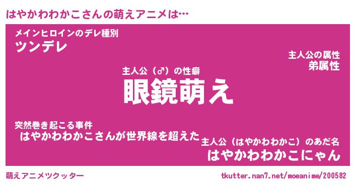 | 男性向けラノベタイトル風あだ名 | 『はやかわわかこの憂鬱』 |