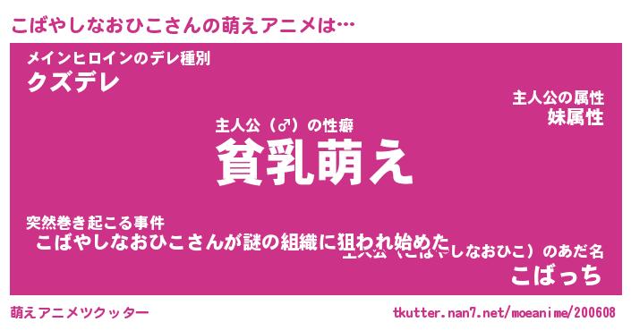 | 女子向けラノベタイトル風あだ名 | 『(仮)こばやしなおひこのやんごとなき事情』 |
