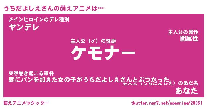 | ヒーロー風カッコイイあだ名 | 『スーパーウチダヨシエ』『天弓騎士ウチ』 |