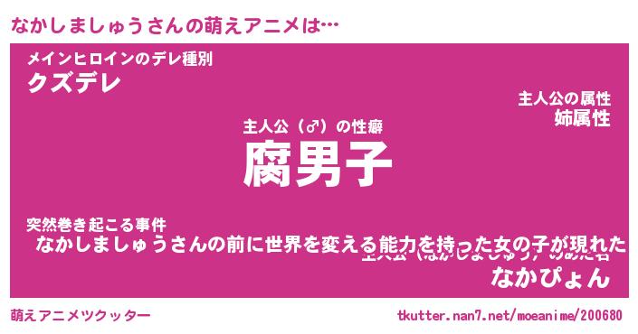 | 男性向けラノベタイトル風あだ名 | 『ナカシマシュウアートオンライン』 |