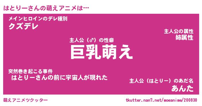 | 男性向けラノベタイトル風あだ名 | 『はとりーの憂鬱』 |