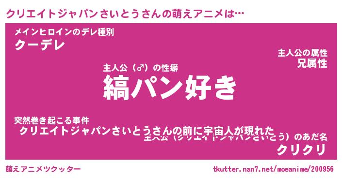 | 女子向けラノベタイトル風あだ名 | 『(仮)クリエイトジャパンさいとうのやんごとなき事情』 |